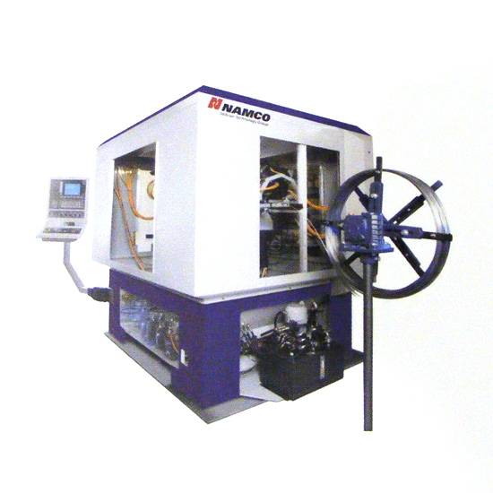 This is a rotary transfer machine. The machine is highly productive. Up to 18 machining operations can be done simultaneously, double productivity can be achieved too with double wire feeding available.