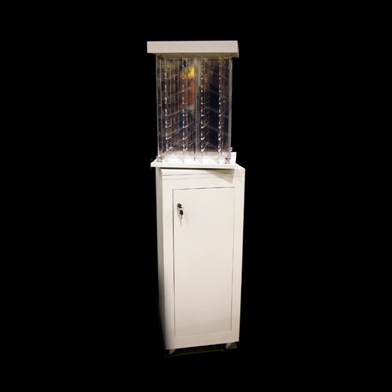 This transparent shop display unit comes with spacious room for showcasing lots of products at a time. It is rotatable for convenient viewing from different angles. This robust acrylic display is widely applicable to shops and malls.