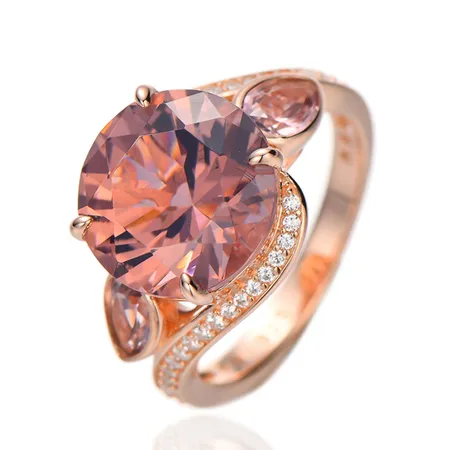 Round And Pear Shape Morganite Nano Silver Ring With Rose Gold Plating