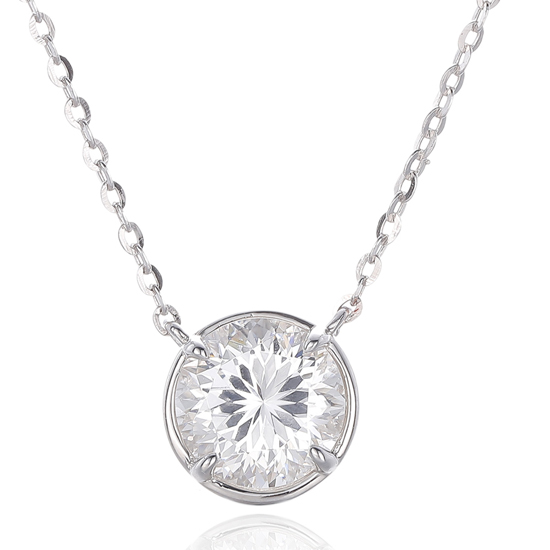 Round Blue Corundum And White Cubic Zircon Rhodium Silver Necklace
