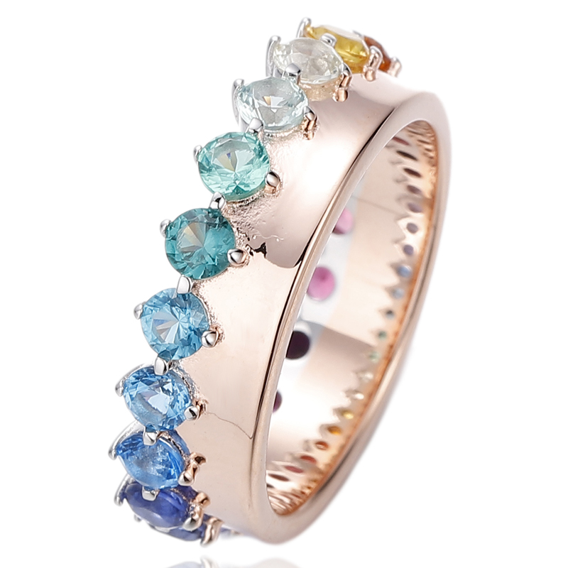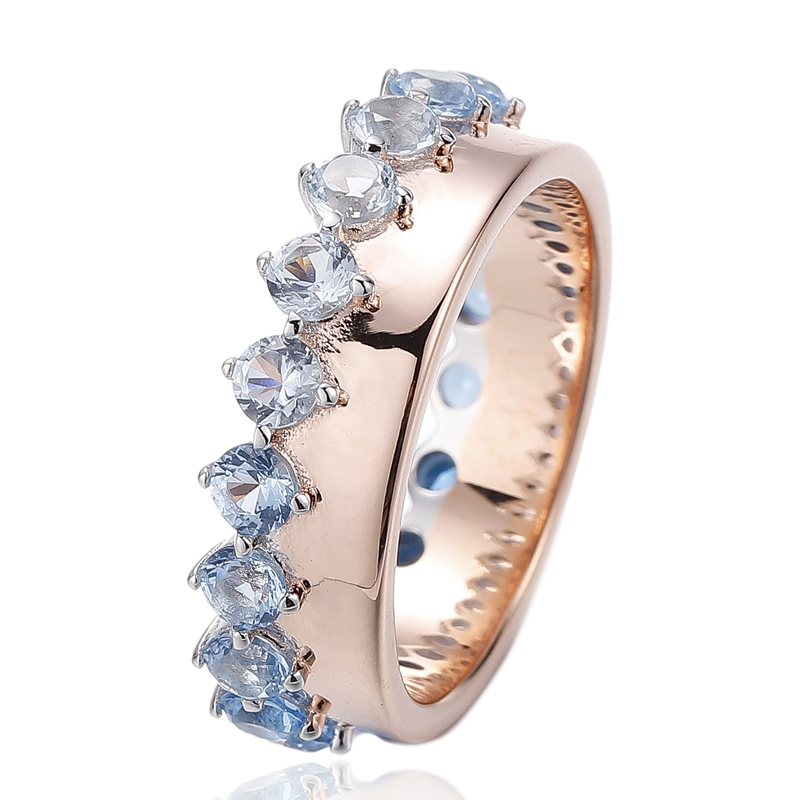 Round Blue Gradient Cubic Zircon Silver Ring With Rose Gold Plating