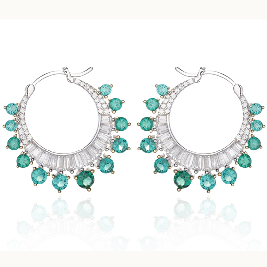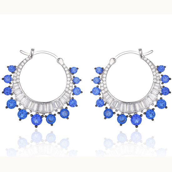 Round Blue Nano And White Cubic Zircon Silver Earring With Rhodium And Black Gold Plating