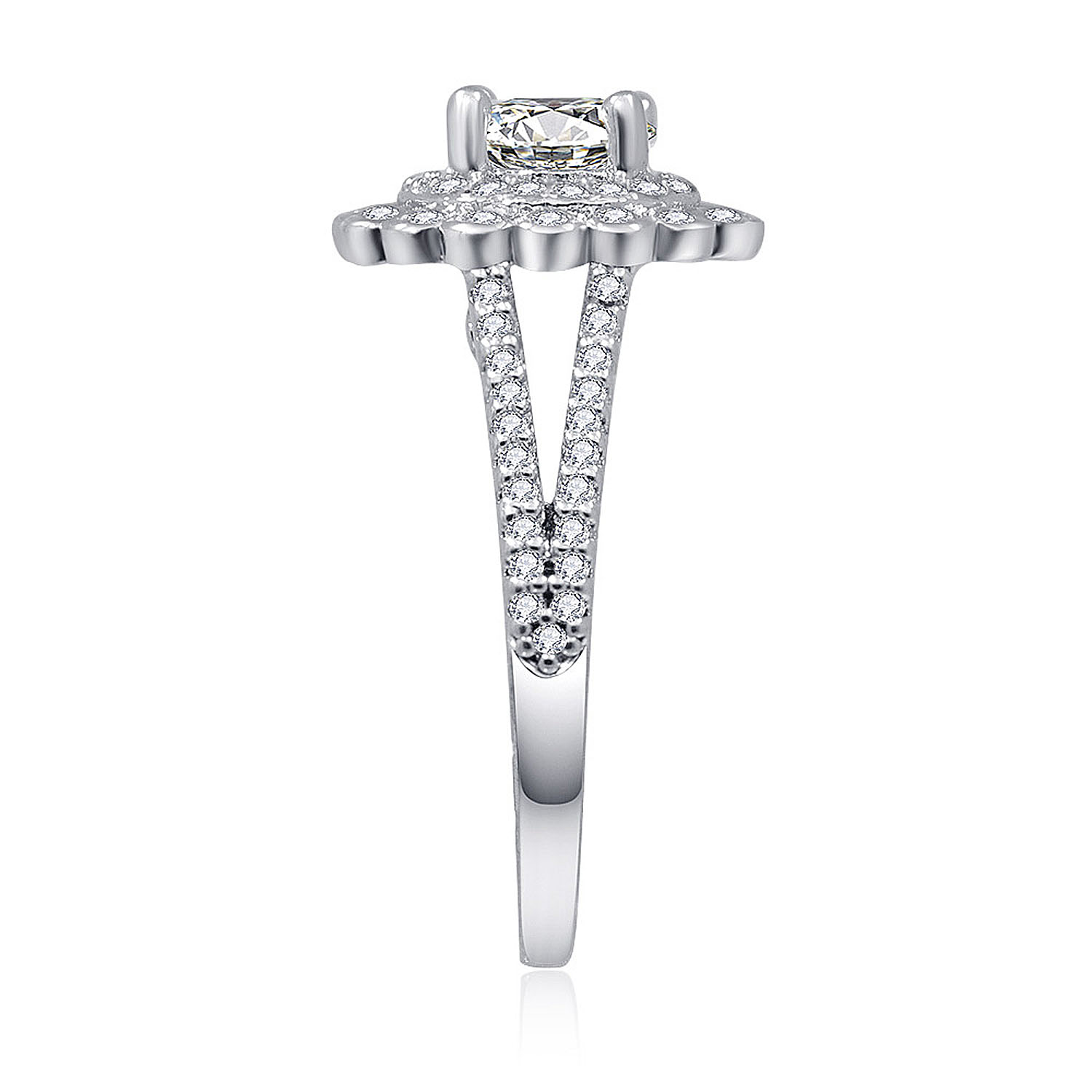 This Round Cut Split Shank Engagement Ring is a stand-alone or together with the matching anniversary band to complete the cubic zirconia bridal set!