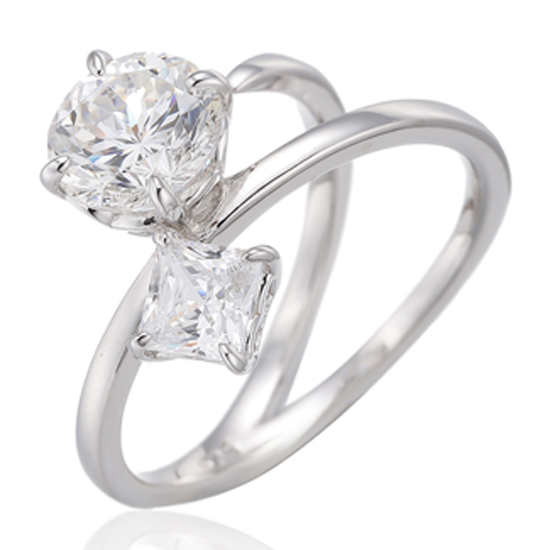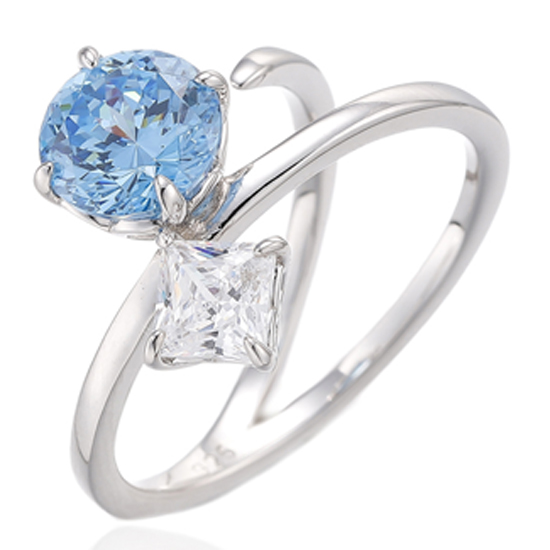Round Diamond Blue And Square White Cubic Zircon Rhodium Silver Ring