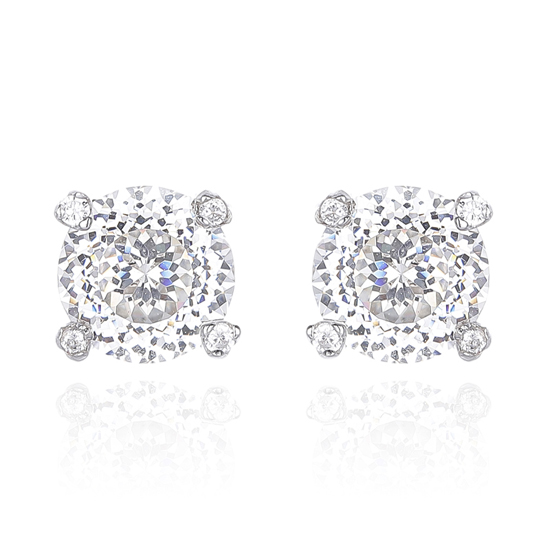 Round Diamond G And White Cubic Zircon Rhodium Silver Earring