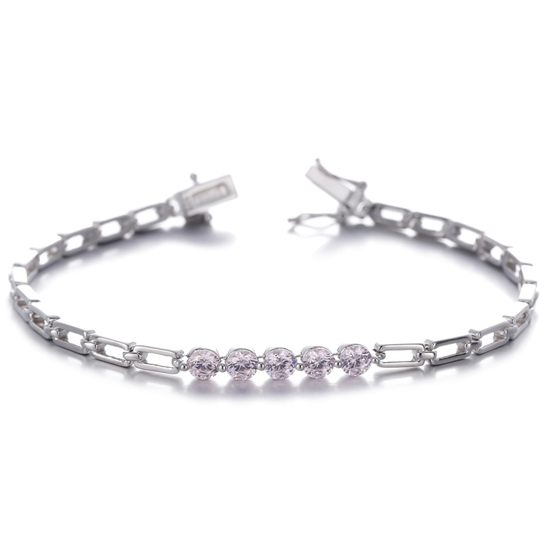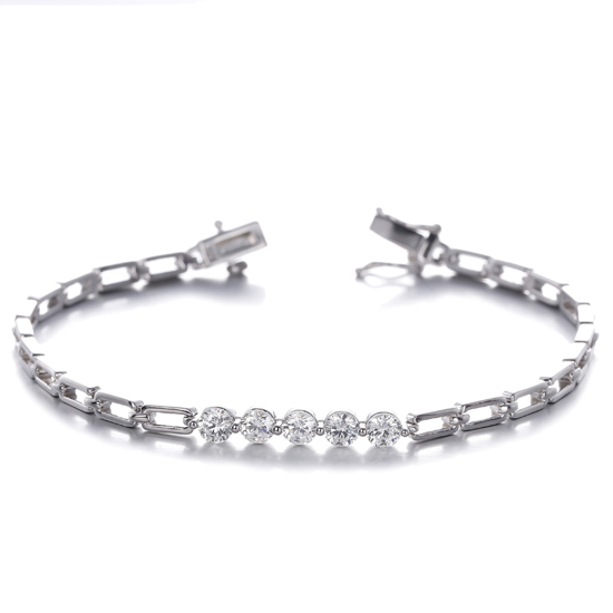 Round Diamond G Color Cubic Zircon Rhodium Silver Bracelet