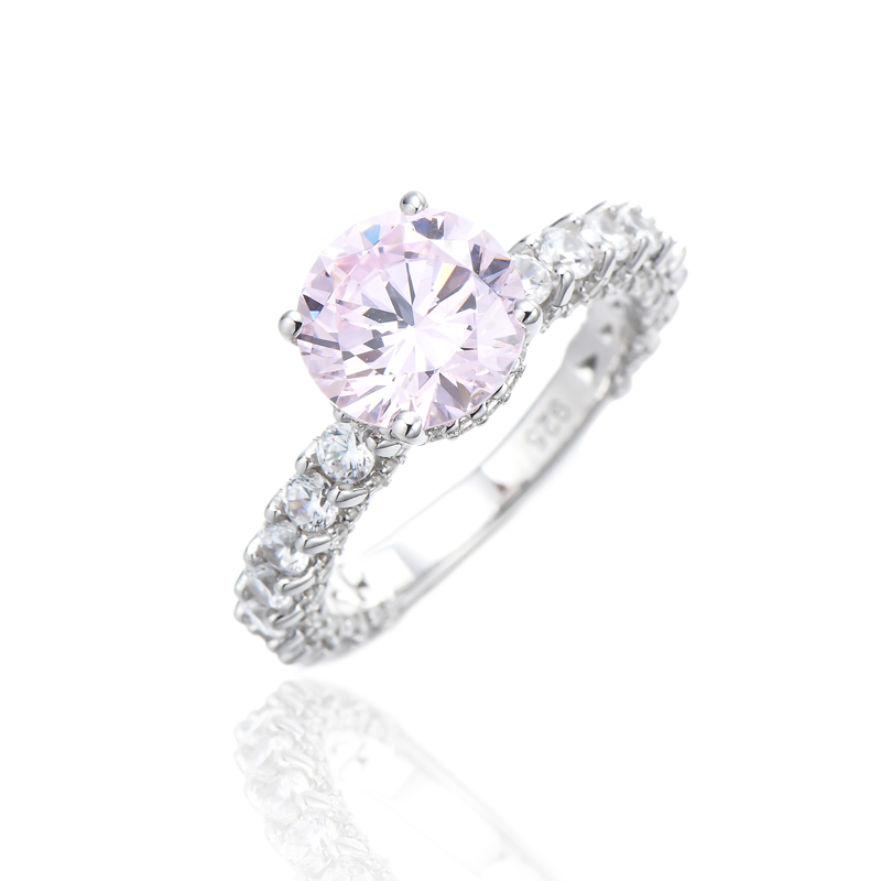 Ruond Diamond Pink And White Cubic Zircon Rhodium Silver Ring