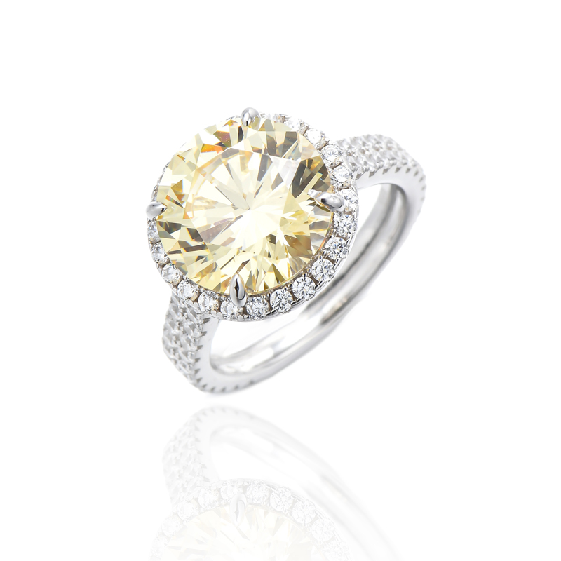 Round Diamond Yellow And White Cubic Zircon Rhodium Silver Ring