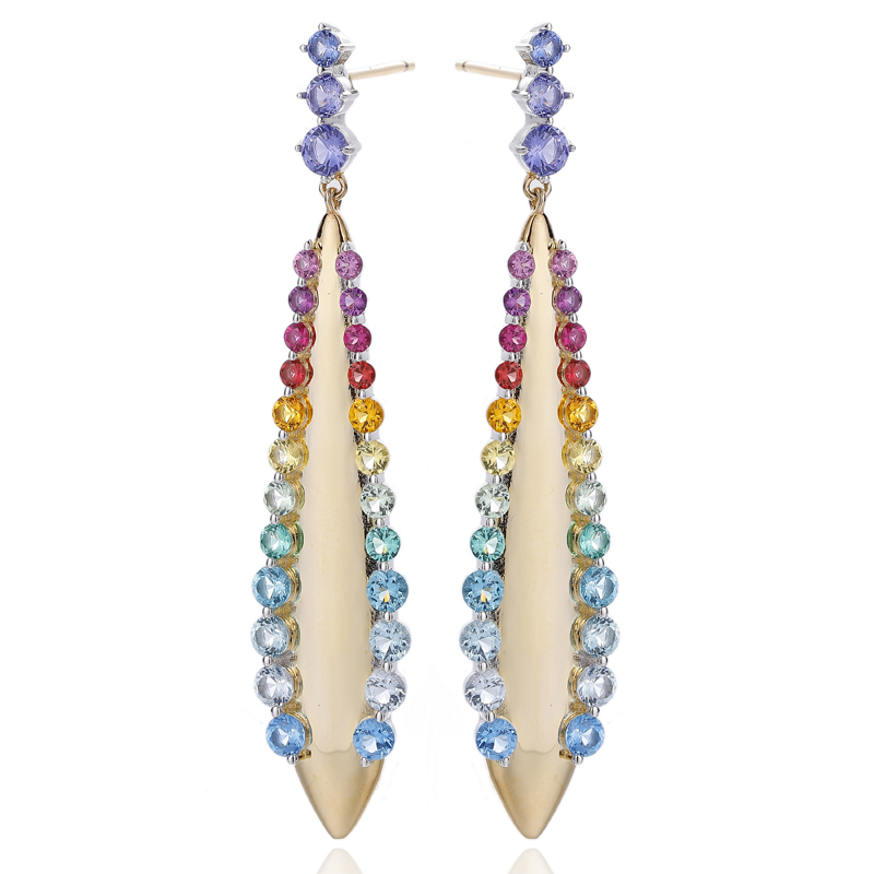 Round Rainbow Cubic Zircon Silver Earring With Glod Plating