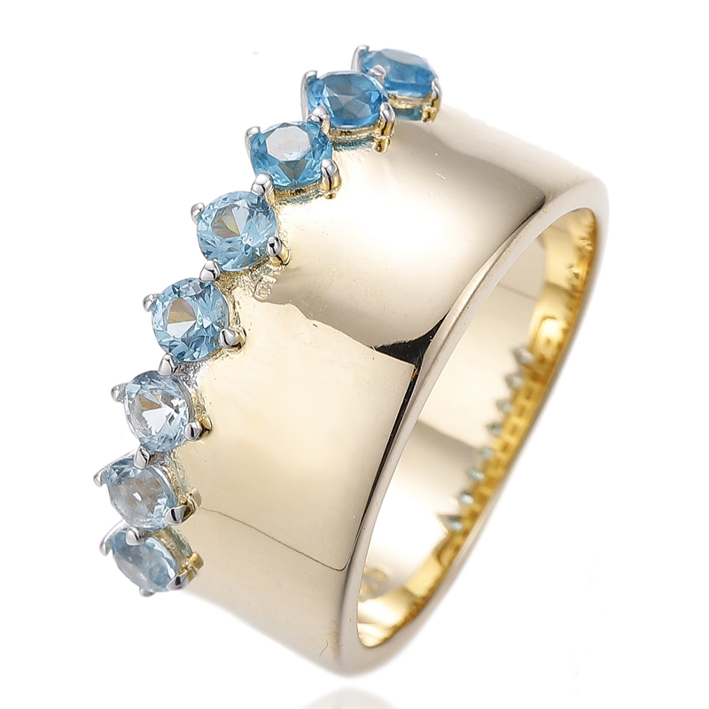 Round Rainbow Cubic Zircon Silver Ring With Gold Plating