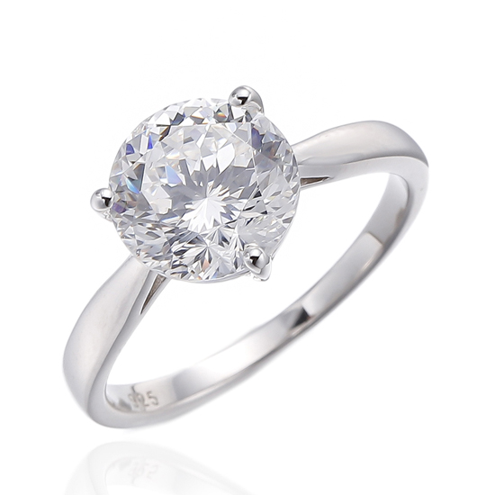 Round Shape Diamond G Cubic Zircon Rhodium Plating Silver Ring