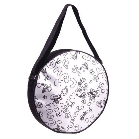 This stylish bag is designed in a round shape for a unique touch. It comes with cartoon prints for an eye-catching look. You can color the bag with your imagination.