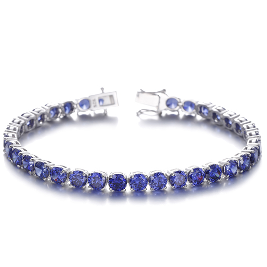Round Tanzanite Cubic Zircon Rhodium Plating Silver Bracelet