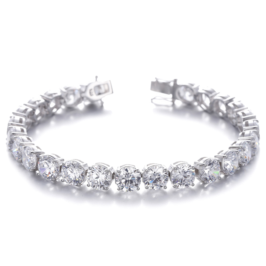 Round Tanzanite Cubic Zircon Rhodium Silver Bracelet
