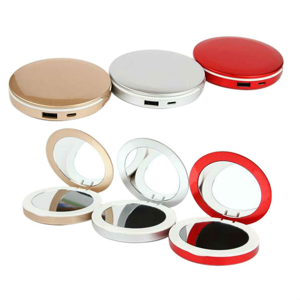 Round Thin Double Side Mirror Power Bank with 2000mAh
