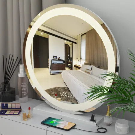 • Beauty Hollywood Style Round Vanity Mirror with LED Strip Lights Customized Logo