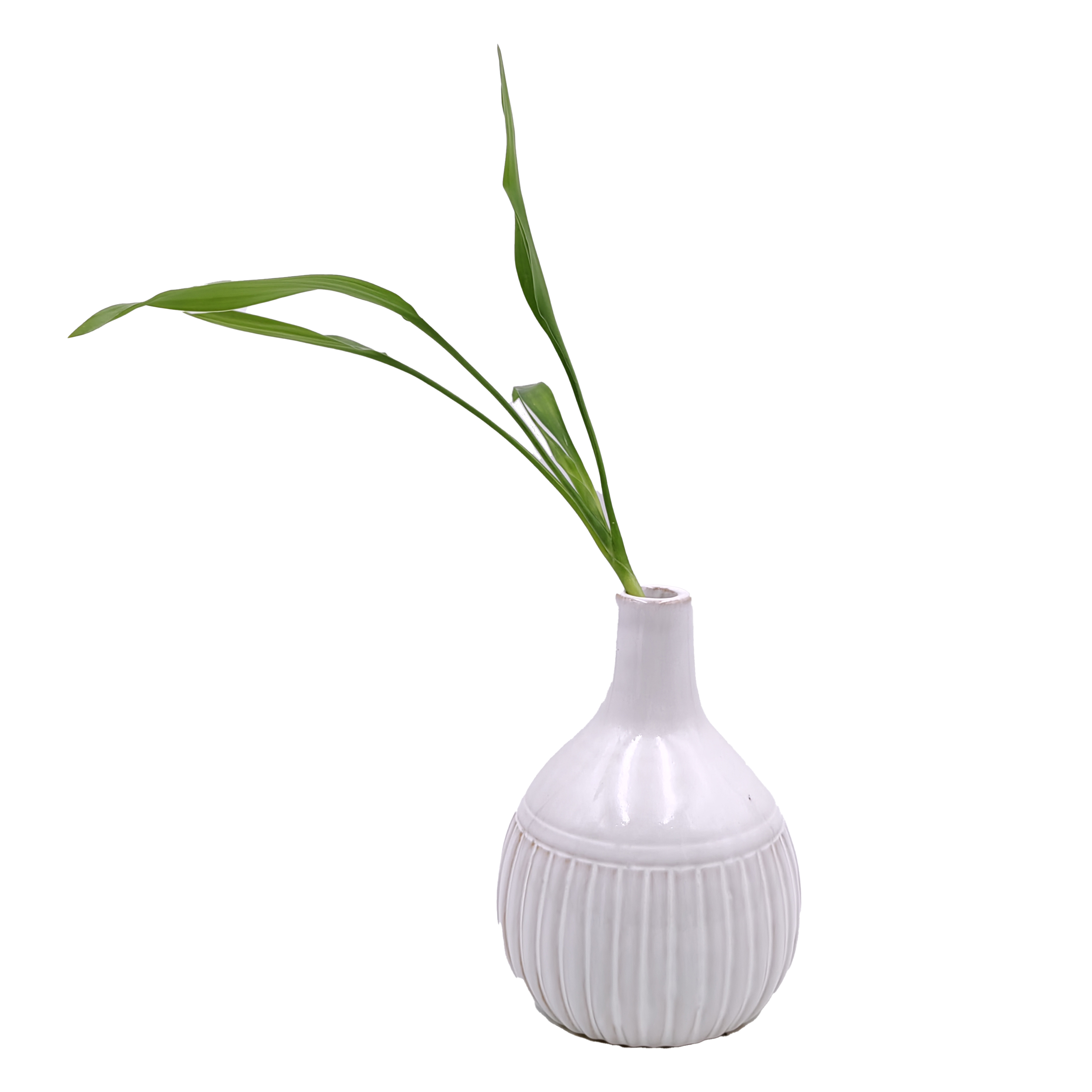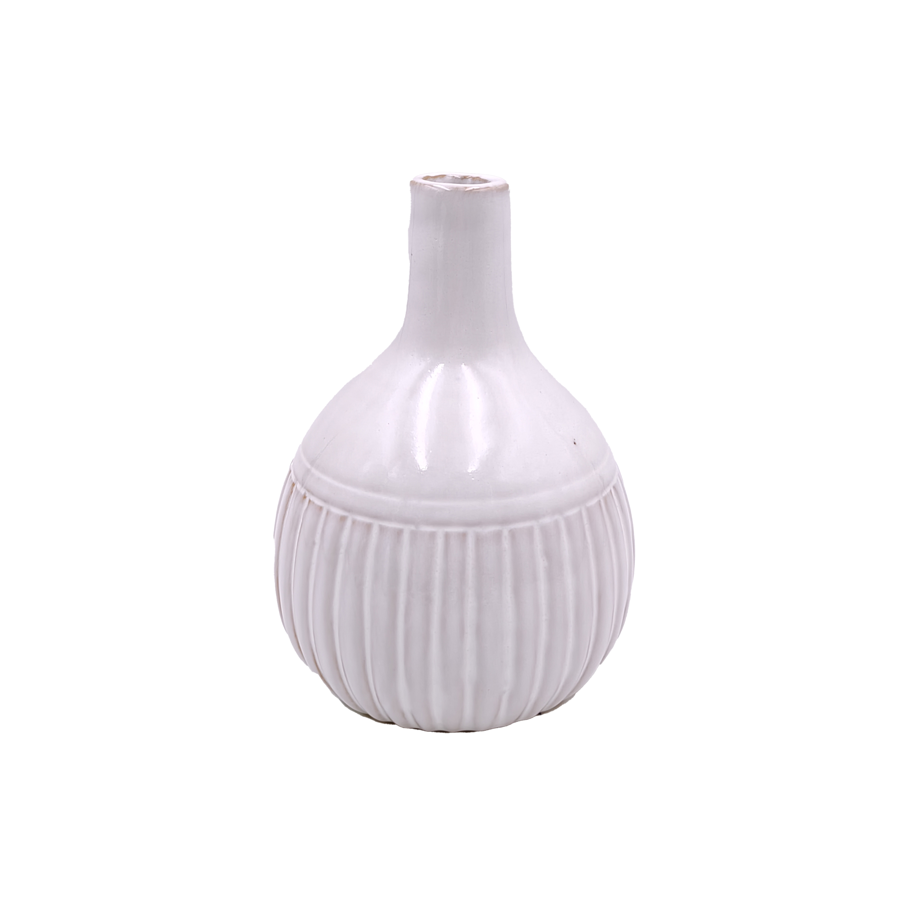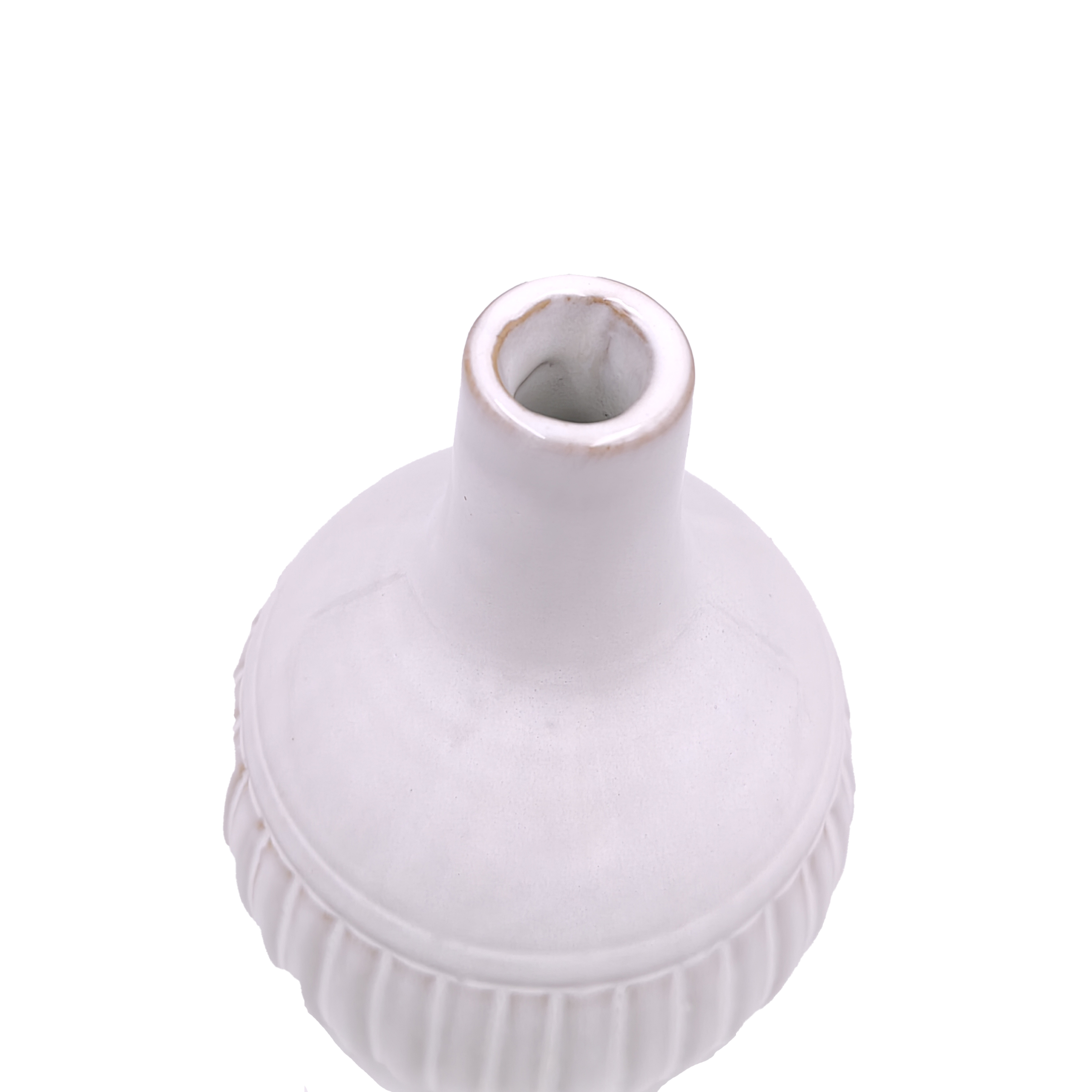 Round White Ceramic Ribbed Flower Vase for Home Decor