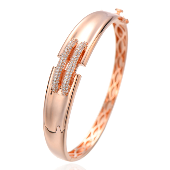 Round White Cubic Zircon Silver Bangle With Gold Plating