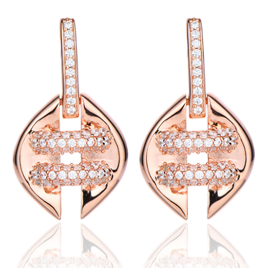 Round White Cubic Zircon Silver Earring With Rose Gold Plating