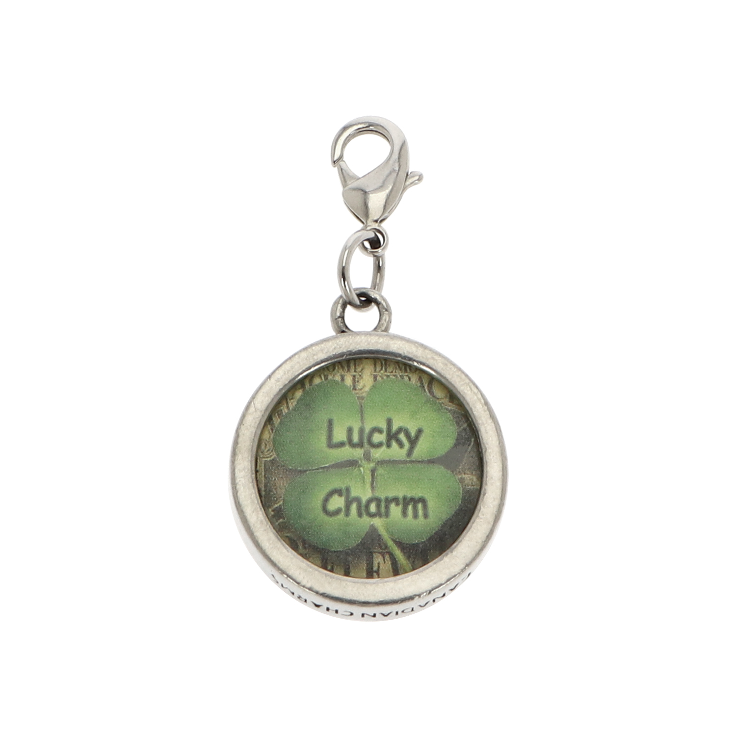 Send your wishes to distant friends and family members with this lovely and dainty charm. Crafted from zinc-alloy, this round charm houses a clover motif adorned with the words “lucky charm” to send your seasonal wishes to loved ones far away from home. The delicate charm is finally attached to a lobster clasp so it can be attached to carryalls, wallets, and more. Let friends and relatives feel blessed and loved with this adorable and dainty charm.