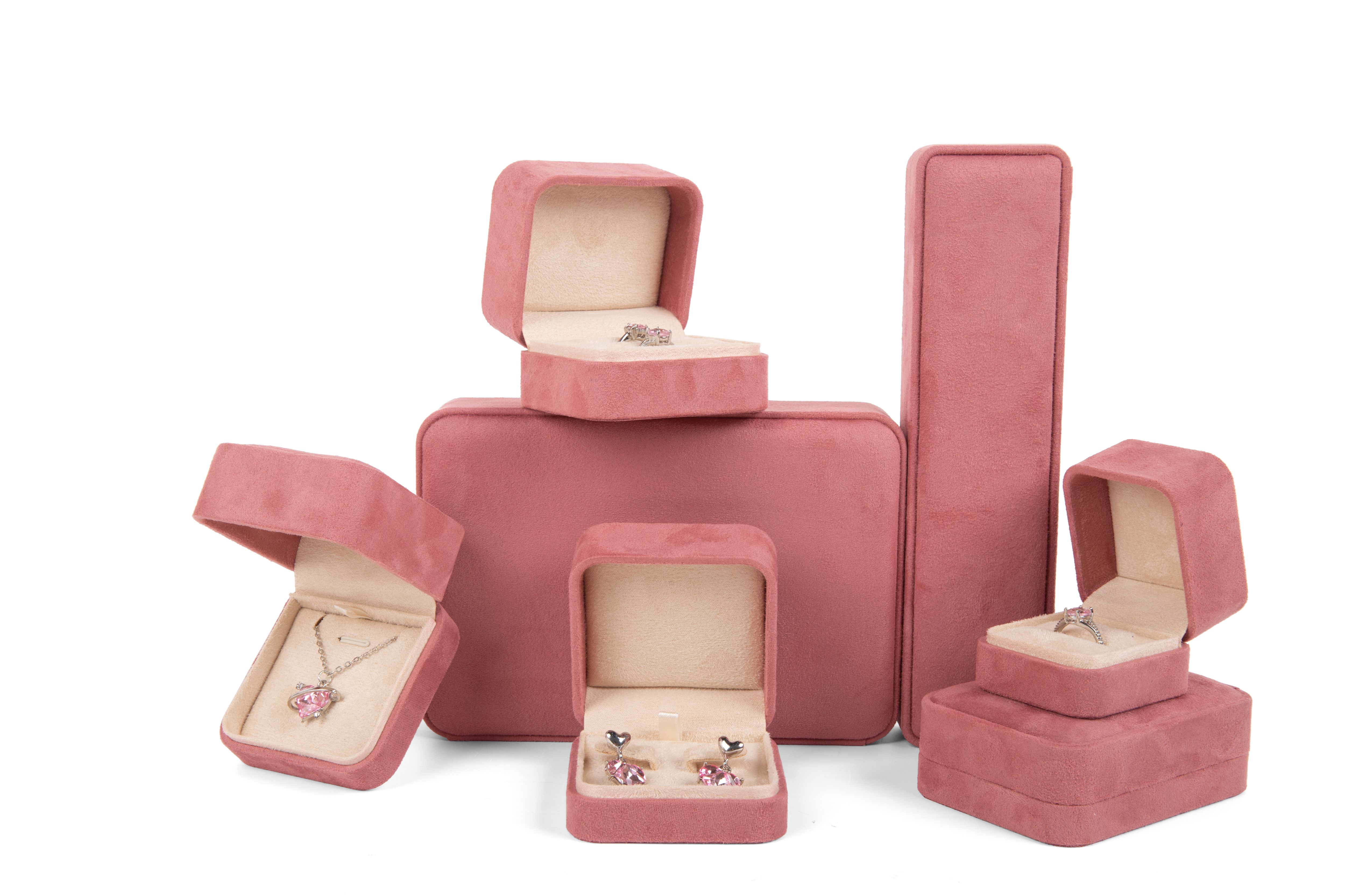 Rounded-corner jewellery box in faux suede material. A truly classic design. Customisable in material and colour.