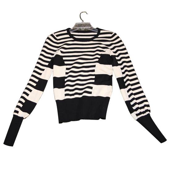 This round-neck top has a trendy design with patterns comprised two different thickness of black and white strips to create a visual effect. The slender strips pattern is almost spread all over the vest while the thick strips pattern is hided on inner arms and two waist side.