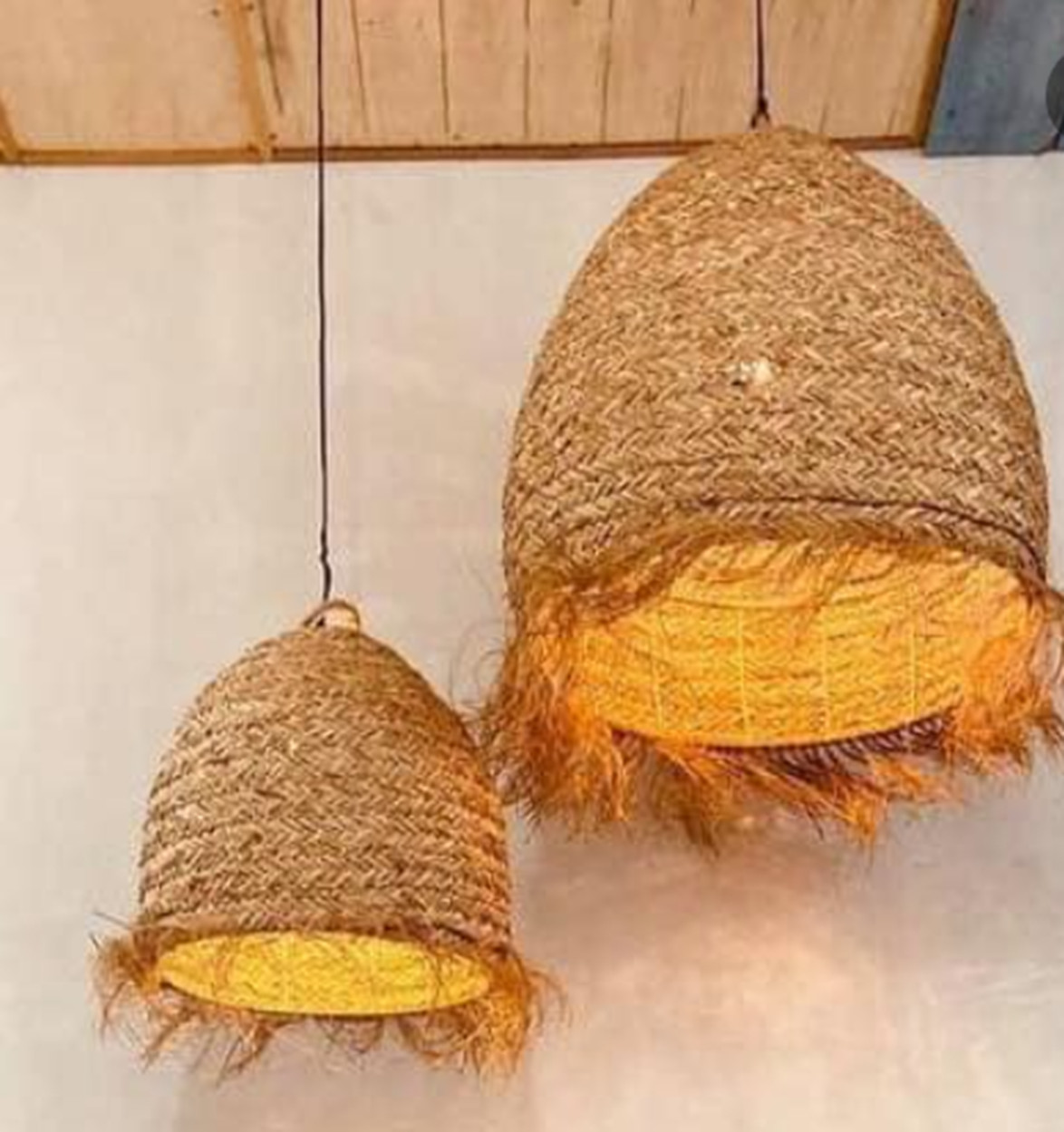 Round seagrass lantern with jute decoration. Natural color and iron frame.