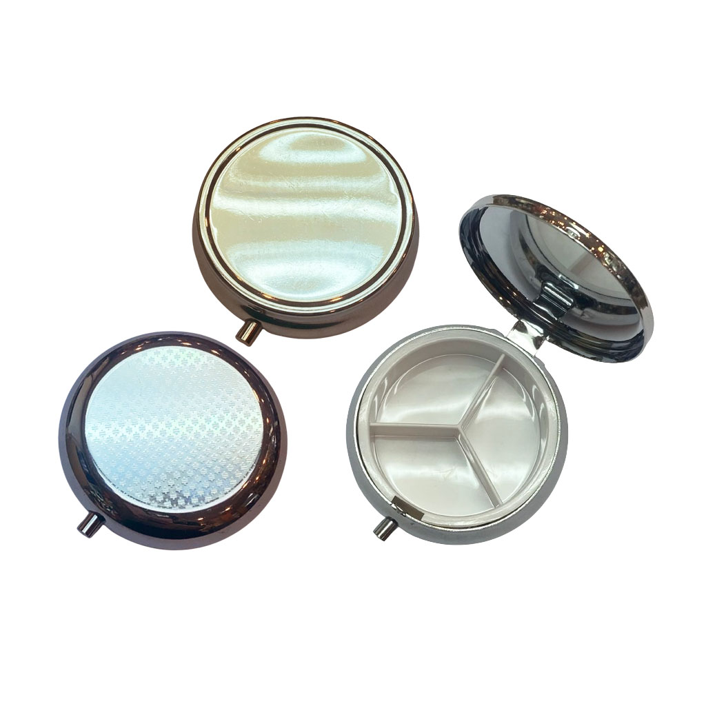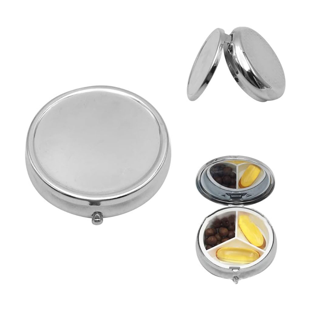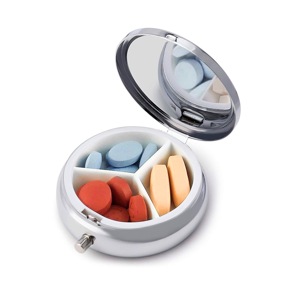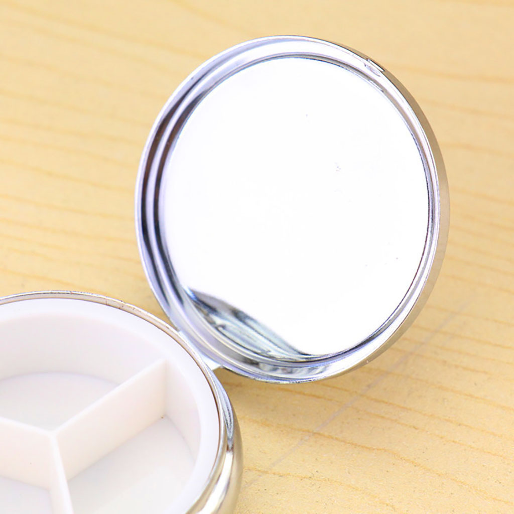 Round-shaped Portable Pocket Pill Box with 3 Dividers includes the following features :