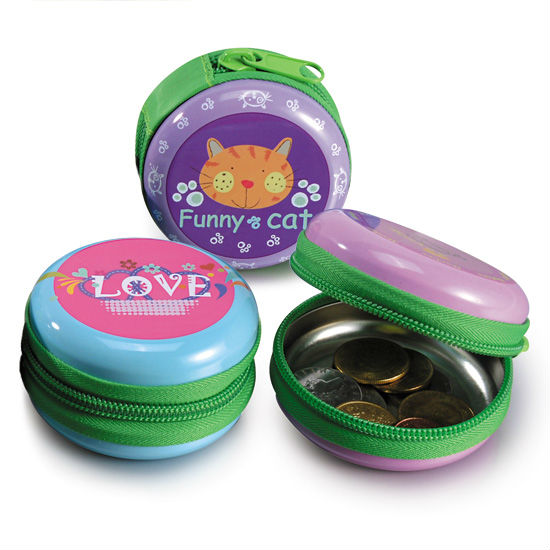 • Round zipper tin box, size: (dia.) 7*3.5cm(H), with zipper, each in the blister card.