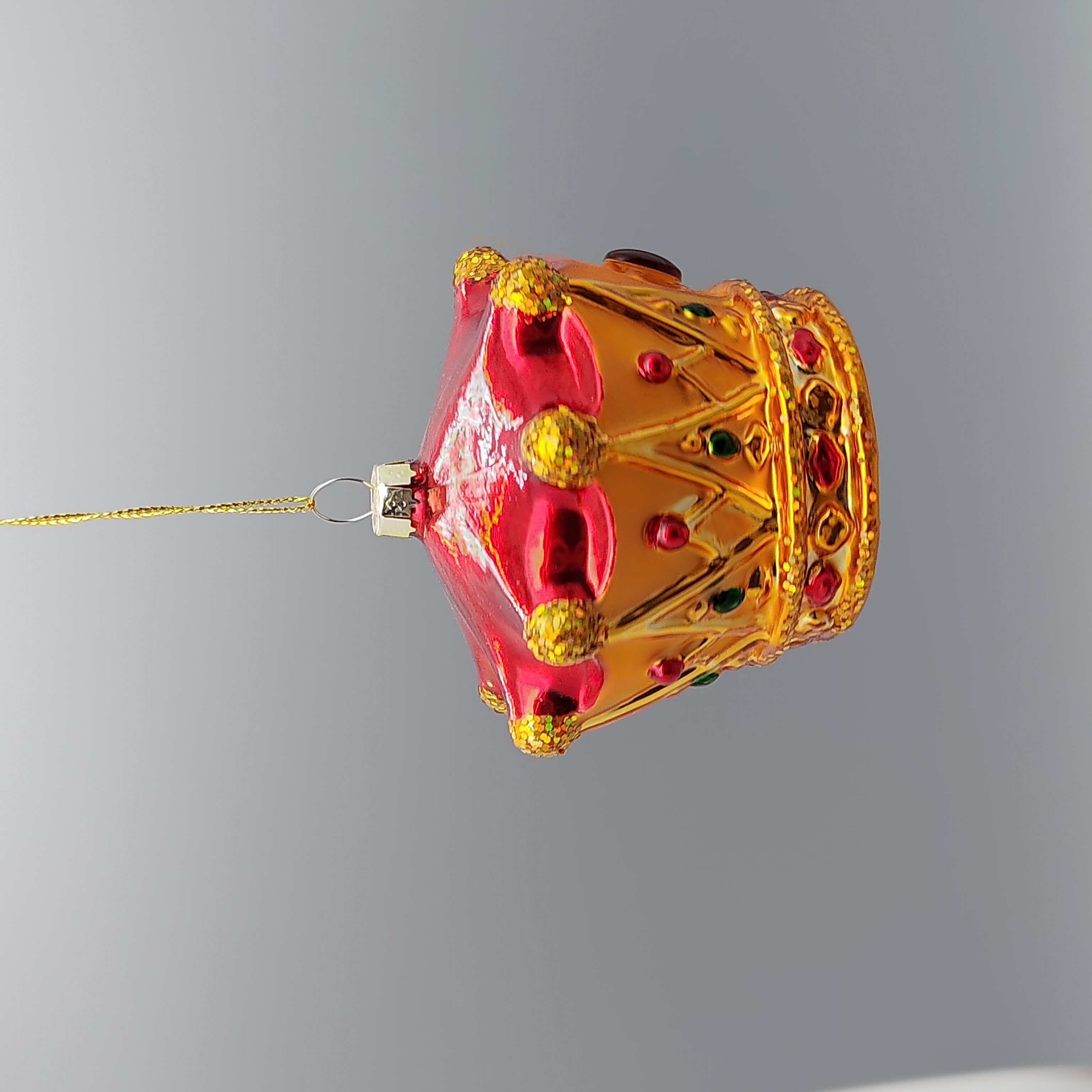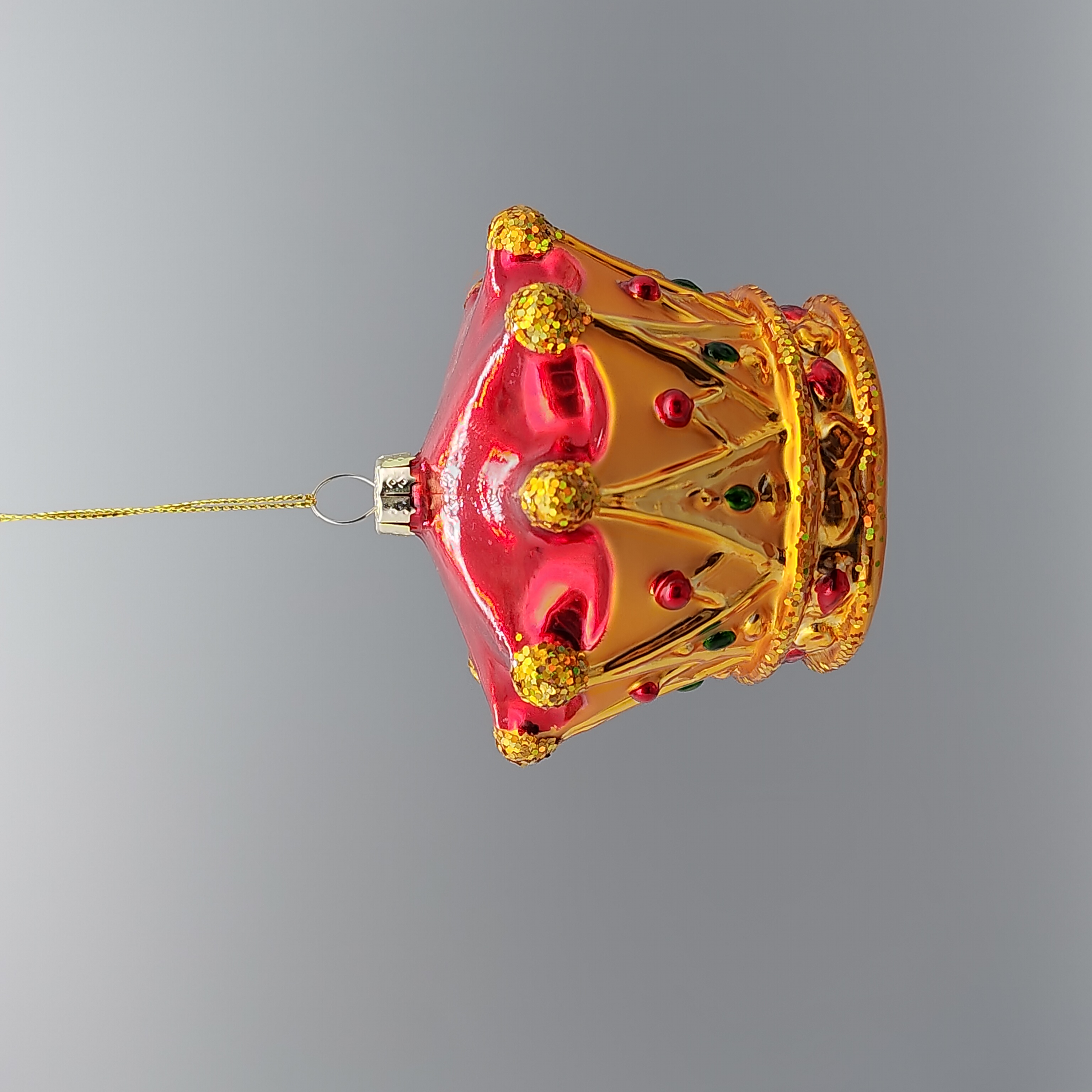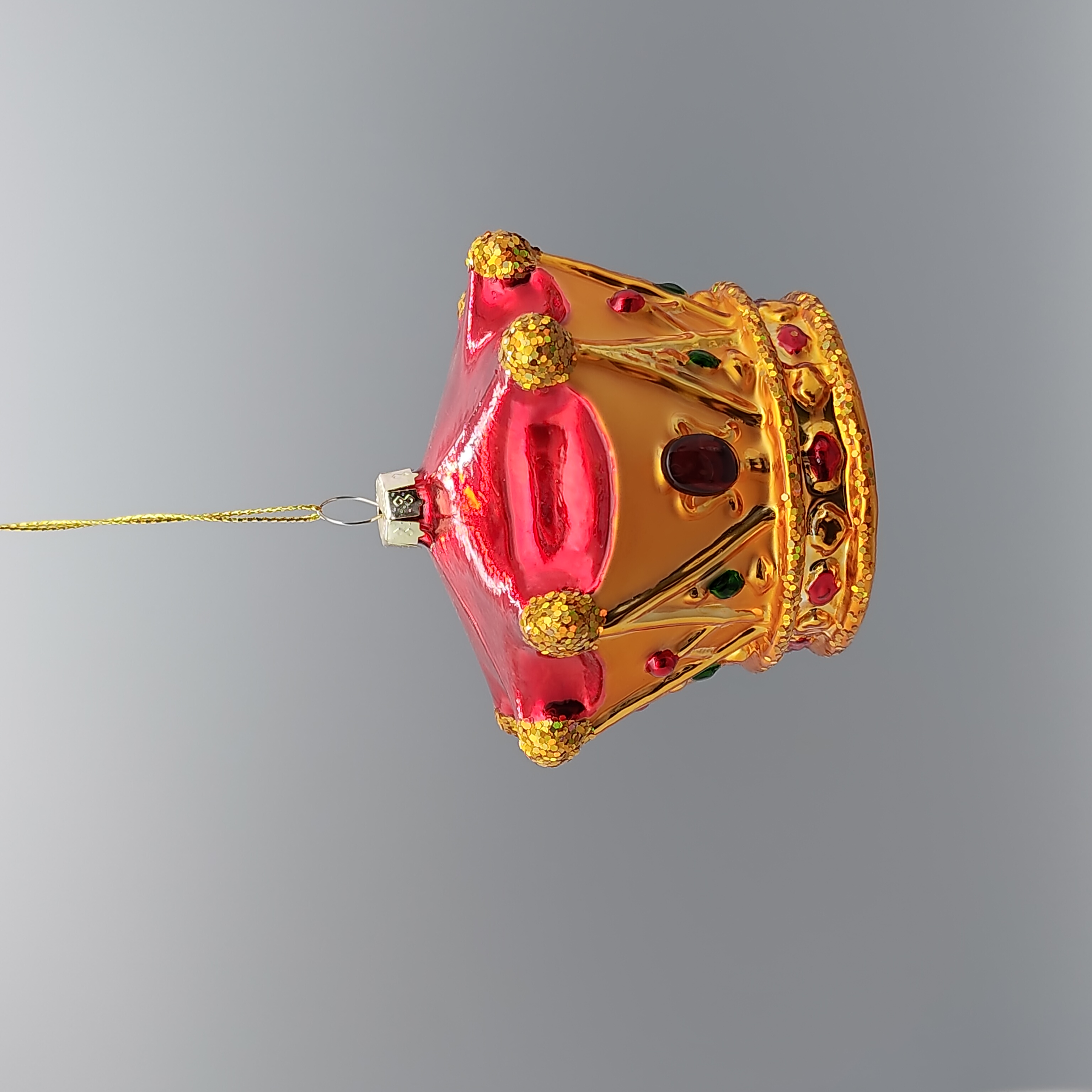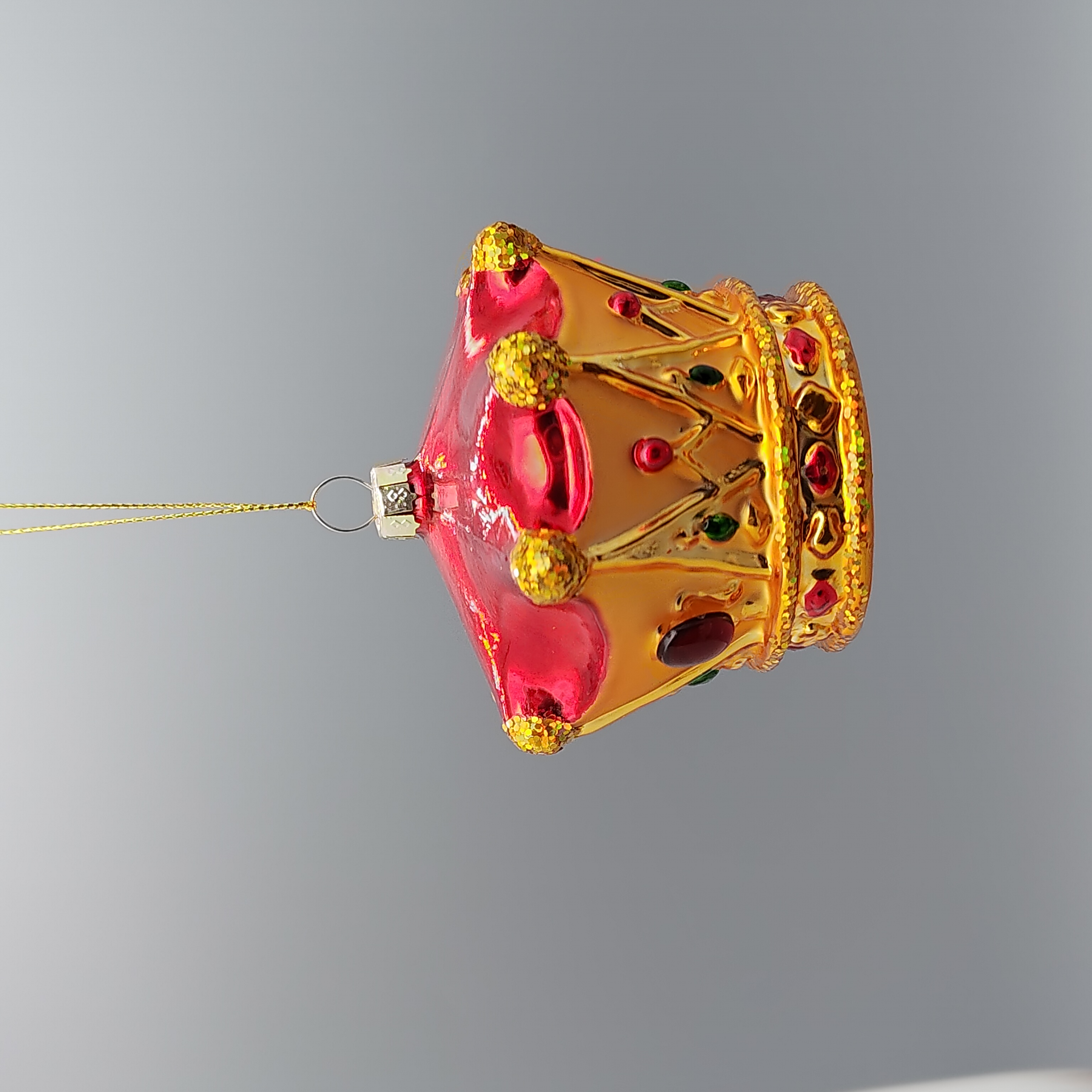 Item Name: Royal Crown Christmas Ornament with Red and Gold Jewel Design
