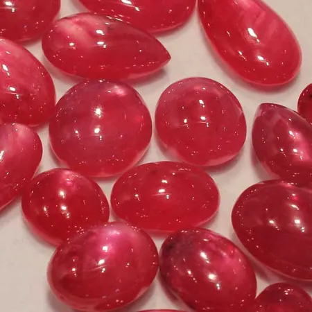 Outlined is a series of heated rubies in red color which radiates warmth. Each one comes in carat size and in cabochon cut with a smooth surface. Featuring high purity, these rubies are surely the ideal material for making jewelry pieces.
