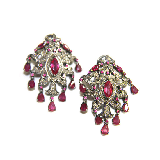 • Earrings in rubies and diamonds studded in 18K gold and silver.
