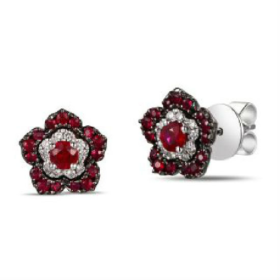 18K White Gold Ruby + Diamond Earrings