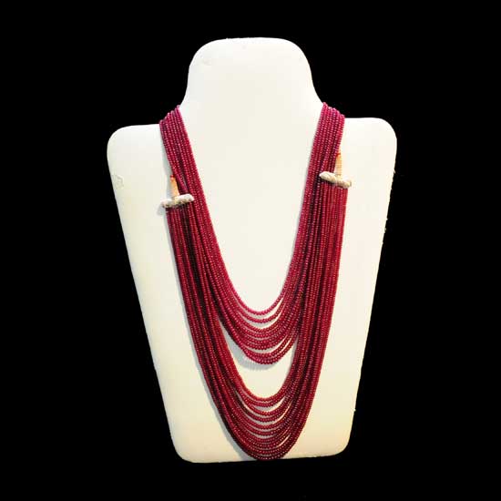 The necklace is strung with abundant well-sourced and processed ruby beads. These dainty beads gather together to form a grand, auspicious-looking full red appearance. This necklace is a perfect accessory for receptions, cocktail parties, etc.