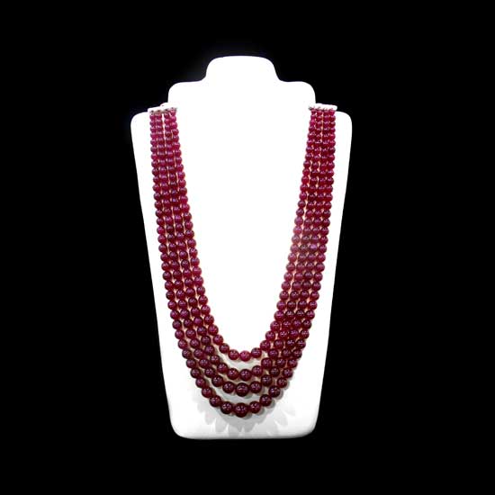 This exquisite ruby necklace is formed by round ruby beads which flaunt a charming red color. The finely polished necklace features a sleek, shimmering surface. The elegant necklace is a great addition to your jewelry collection.