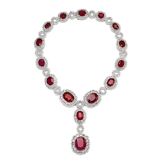 This is a stylish necklace that is finely crafted with refined details. It is ornamented with shimmering ruby gemstones and diamonds on the platinum setting. This dazzling necklace is an ideal addition to complete your jewelry collection.