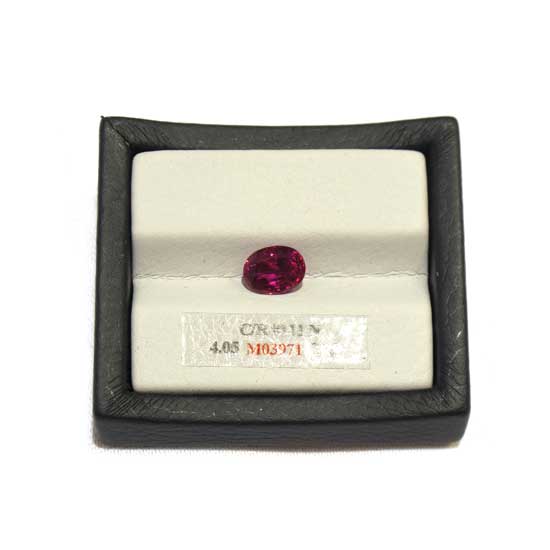 This alluring ruby stone features an oval-shaped design. The gemstone showcases a vivid rose-carmine color. It is perfect to adorn necklaces, earrings, rings, etc.