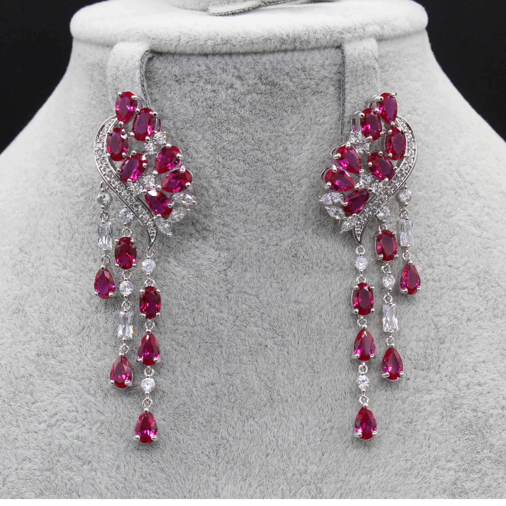 Ruby Stone Long Tassel Earrings