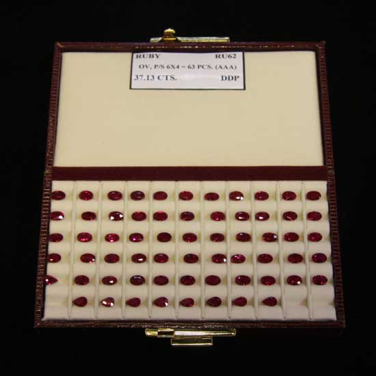 This breathtaking ruby set contains red ruby stones with an oval or pear cut. The ruby stone is distinguished for its magnificent color, remarkable hardness and outstanding brilliance. The dainty ruby passionately presents warmth and a strong sense of vitality.
