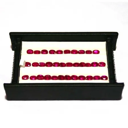 The ruby stones are designed in an oval pear shape in vibrant red color. The stones feature faceted surfaces for enchanting sparkle. These ruby stones are perfect for accessorizing your fine jewelry.