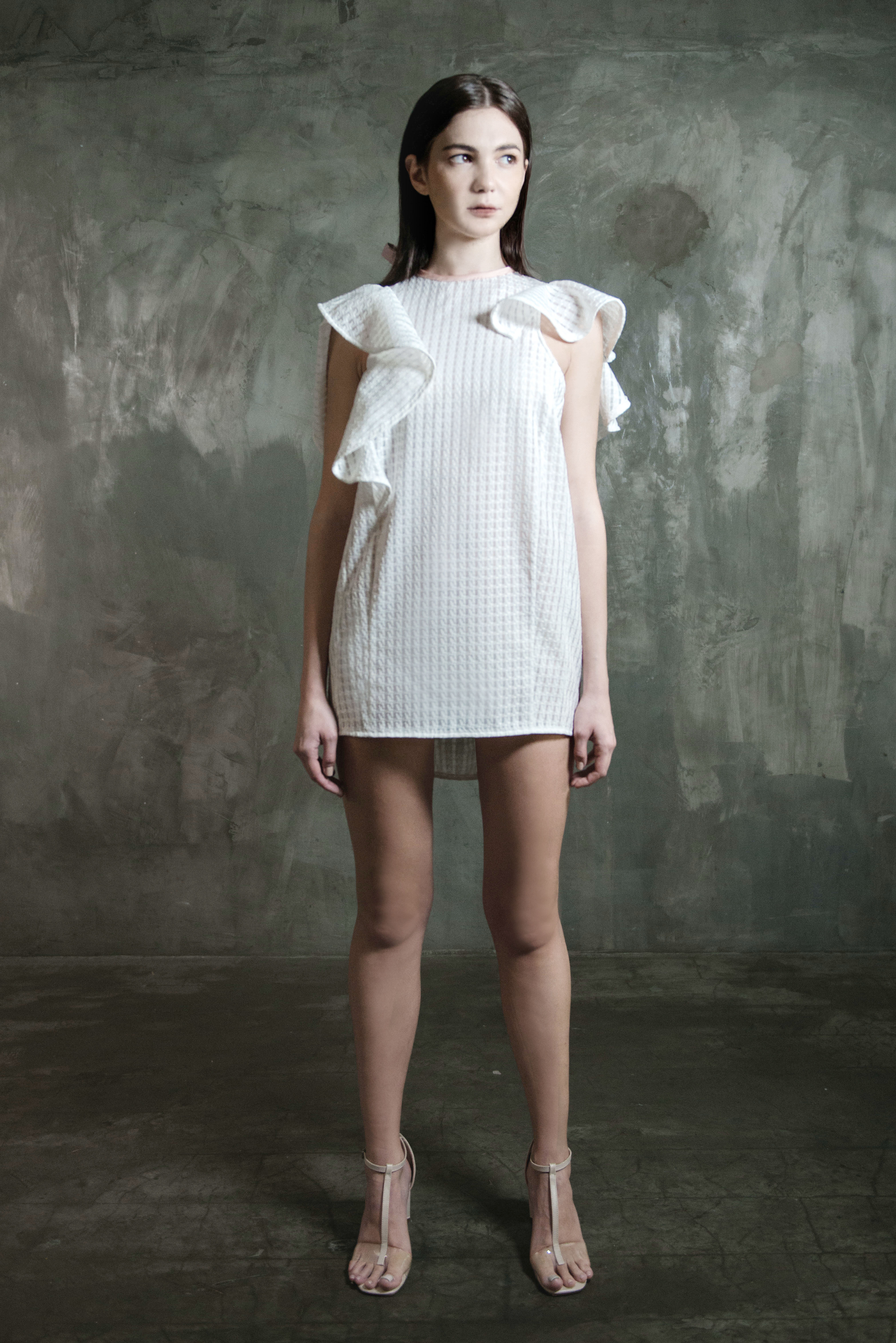 • Asymmetric ruffles sleeve with translucent jacquard fabric