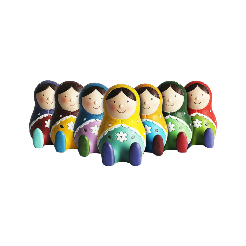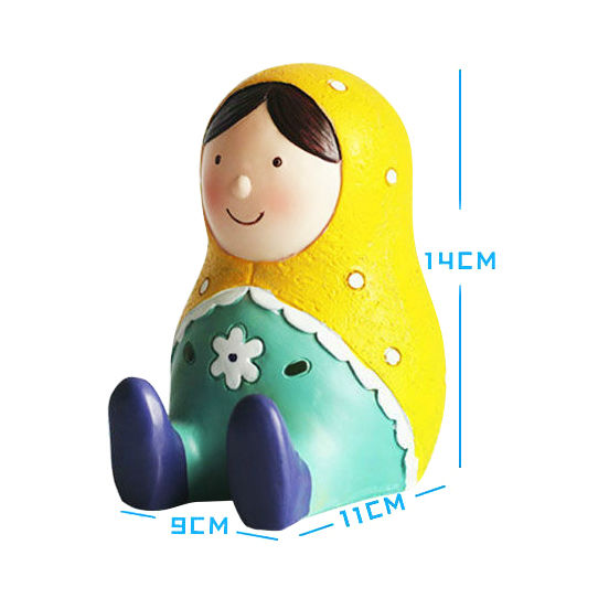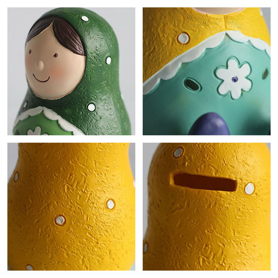 Zakka style 4.5 inch height russian dolls piggy bank, polyresin russia matryoshka nesting doll coin bank.