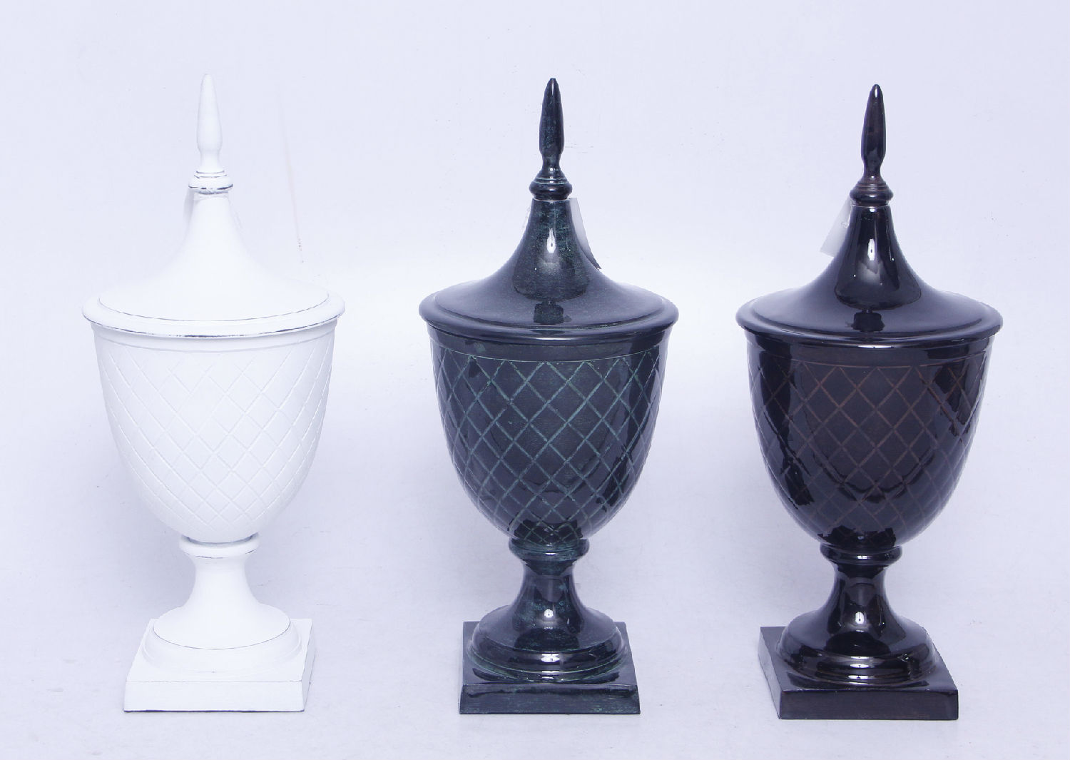S/3 Asstd URN W.LID SQ Base Lattice EMB. Patina
