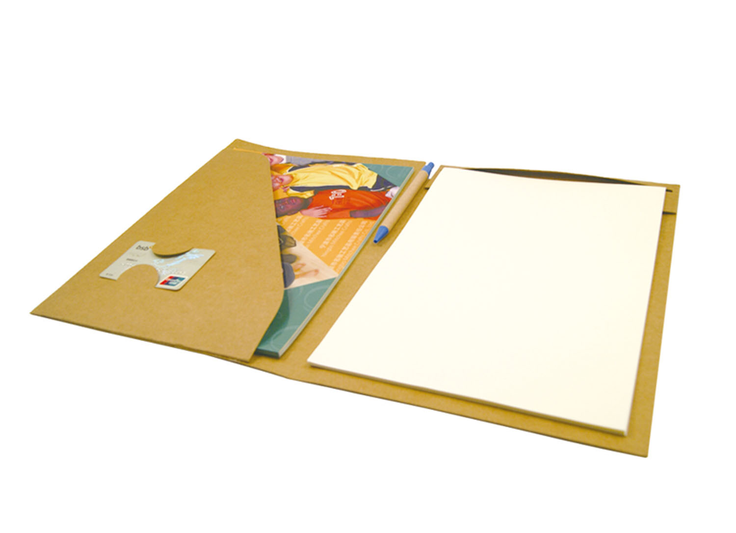 The craft paper folio with notebpad inside, as well as the paper ballpen, whole product is natural and recycling.