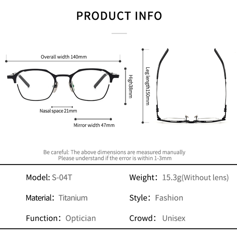 S04T Titanium Frame IP Plating Good Quality Optical Glasses Frame for Men and Women Eyebrow Eyewear Frames Wholesale