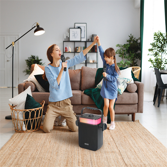 Middle size with handle design, two microphone, karaoke with friend anytime,anywhere.