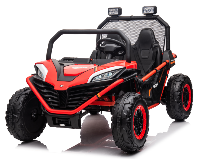Headlights and 2 working led lights on the top, USB function,Power display , Bluetooth speaker,FM ,high-low speed ,2.4G R/C With 2 real seats