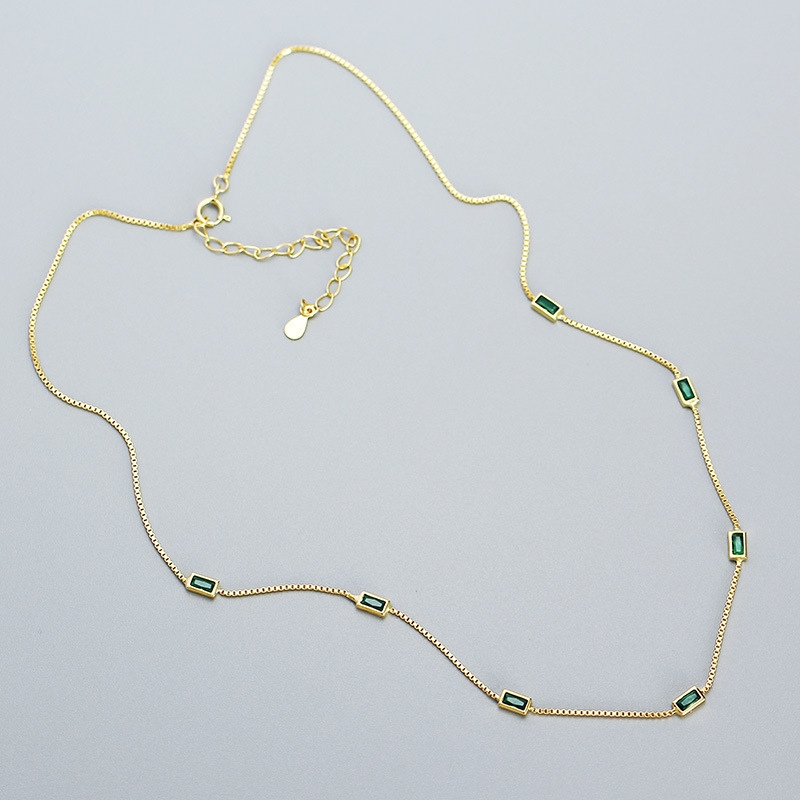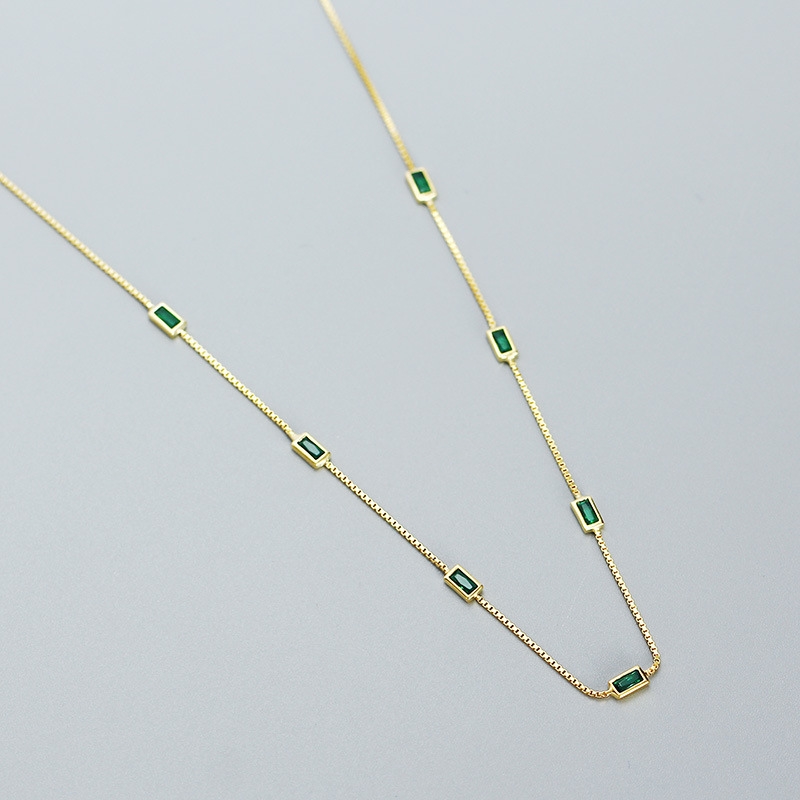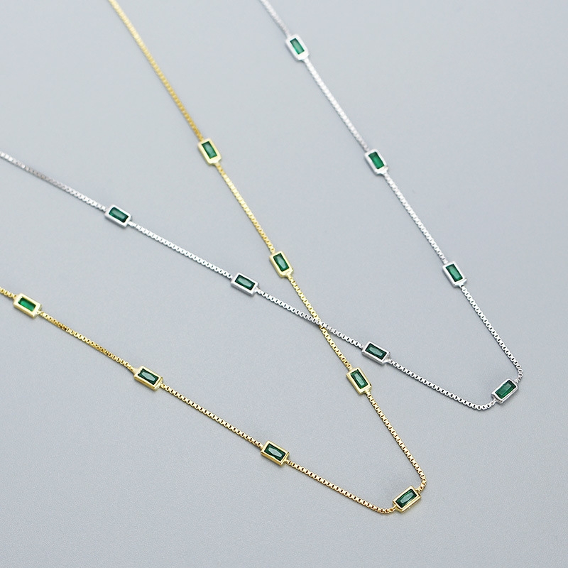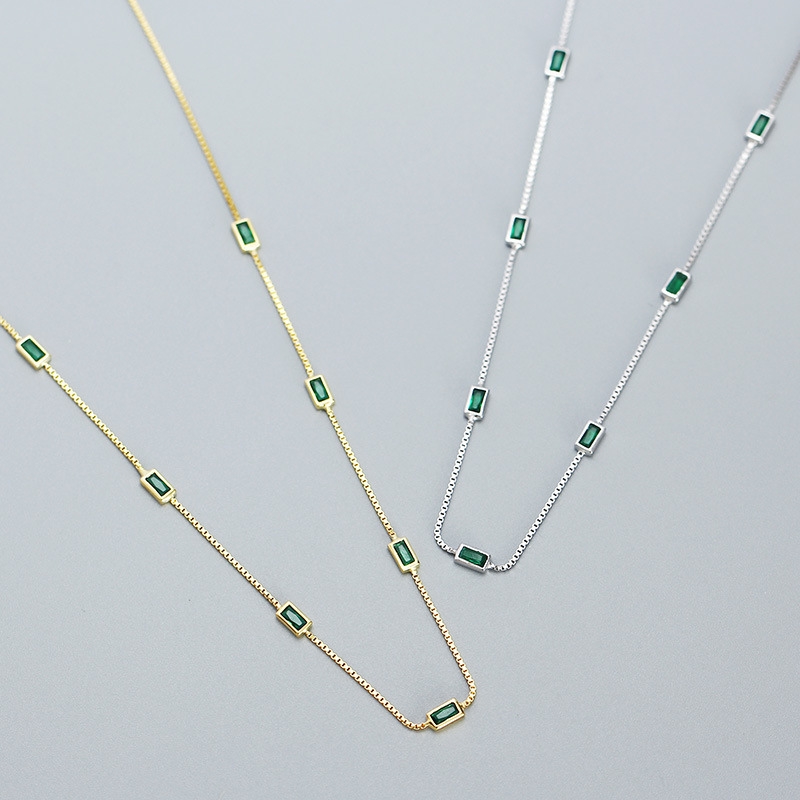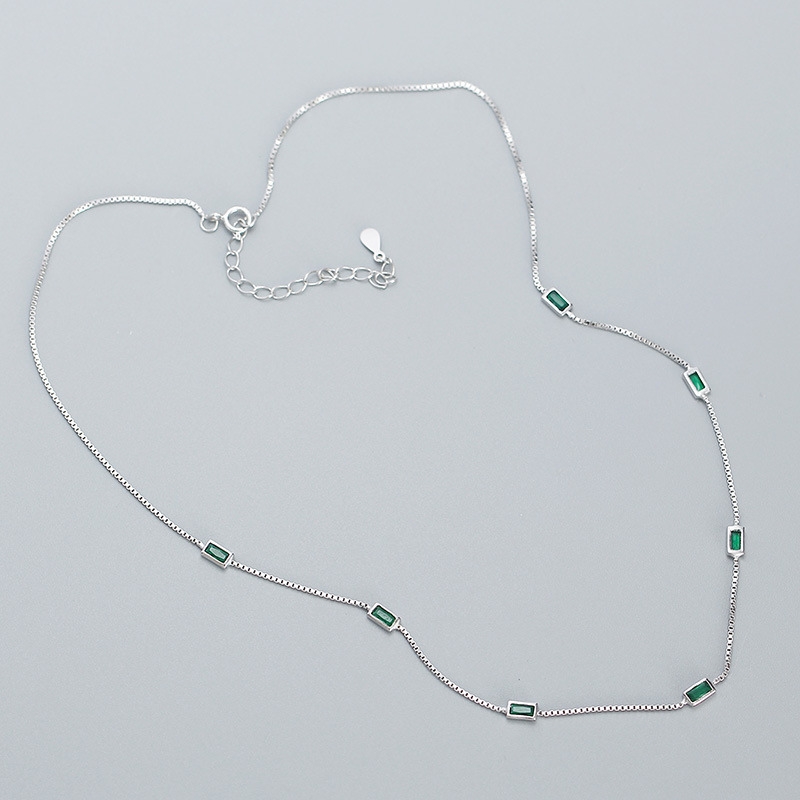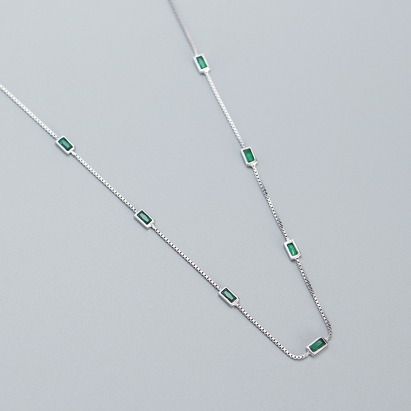 This S925 silver emerald zircon thin chain necklace is a timeless piece that blends elegance with subtle sparkle. Crafted from high-quality sterling silver, it features a delicate chain that highlights a stunning emerald-green zircon centerpiece, radiating sophistication and charm. The minimalist design makes it versatile, perfect for both everyday wear and special occasions. Lightweight yet durable, it rests gracefully on the neckline, adding a refined touch to any outfit. A thoughtful gift or personal treasure, this necklace embodies understated luxury and modern style in one exquisite accessory.