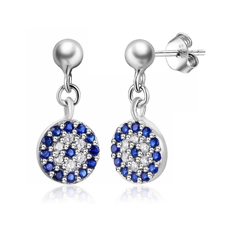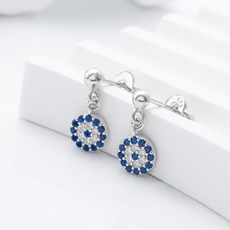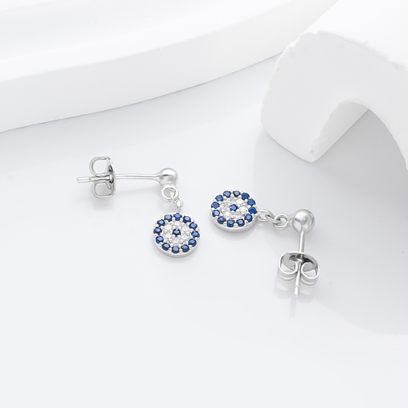 Crafted with elegance and mystique, these S925 sterling silver devil’s eye earrings feature a striking circle design adorned with vivid blue zircon stones. The shimmering zircon captures light beautifully, symbolizing protection and allure, while the devil’s eye motif adds a touch of bold charm. Lightweight yet durable, they are perfect for daily wear or special occasions, offering both comfort and sophistication. A modern twist on timeless symbolism, these earrings make a captivating accessory for those who embrace style with meaning and a hint of mystery.