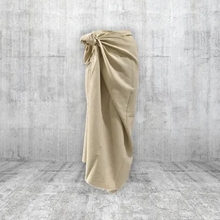 Draped beige sarong skirt, with a side knot detail and soft flowy texture.